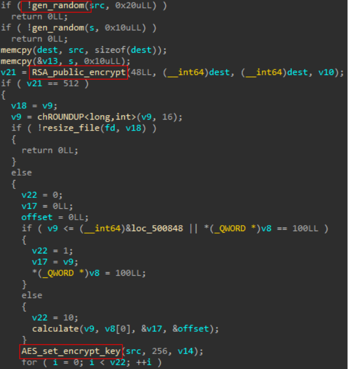 2. Kunci publik RSA, yang di-hardcode dalam file malware, kemudian digunakan untuk mengenkripsi nomor acak 48-byte yang dihasilkan sebelumnya, menghasilkan nomor 48-byte yang berfungsi sebagai kunci untuk enkripsi AES.
