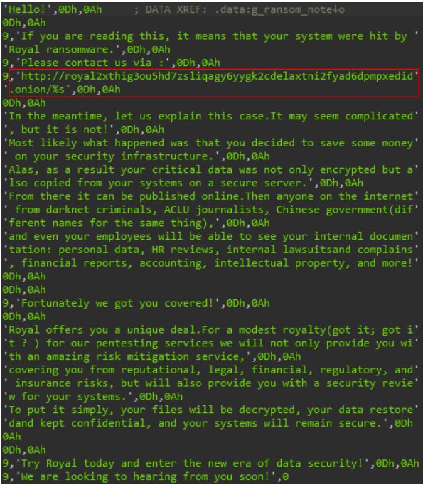 Eksekusi ini menunjukkan masuknya ransomware Royal di platform Linux. Payload, setelah eksekusi berhasil, menambahkan ekstensi file dengan ‘.royal_u’ dan menjatuhkan catatan tebusan dengan nama ‘readme.txt’.