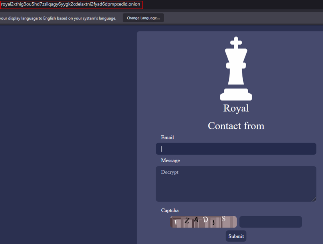 Pada November 2022, ransomware Royal telah menjadi ransomware yang paling tersebar luas di alam liar, melampaui Lockbit sebagai ransomware teratas untuk pertama kalinya dalam lebih dari setahun. Phishing adalah teknik yang paling umum digunakan oleh TA untuk mengirimkan muatan ransomware Royal.